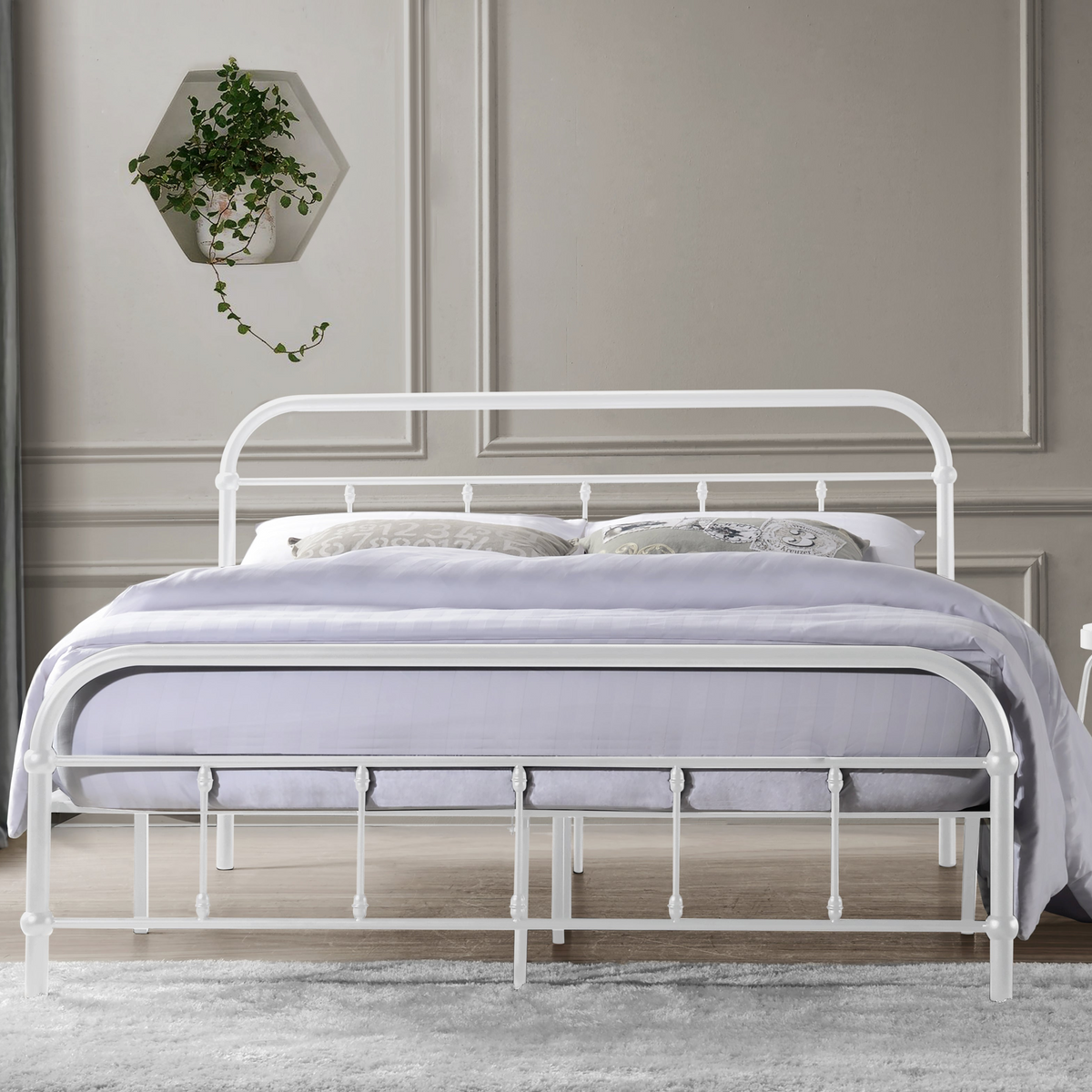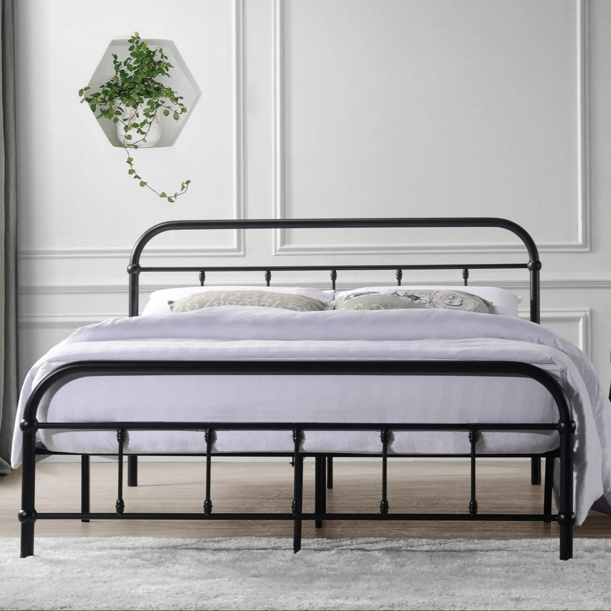 Embrace timeless elegance with the vintage charm of this metal bed frame, showcasing graceful curves and a sleek black finish that effortlessly enhances any bedroom with sophistication.