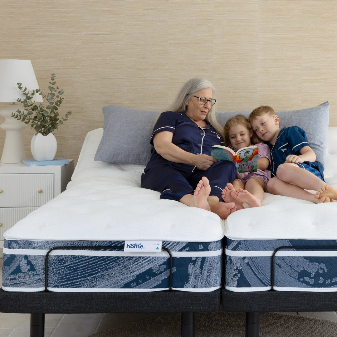 Experience the ultimate in personalised sleep comfort with the Mi Life 400 Level 1 Split King Adjustable Bed and Wonderest Home Comfort Mattress Package. Designed for couples or individuals who want complete control over their sleep positions, this premium package pairs the innovative SleepMaker Delta Wave Adjustable Bed Base with two plush Wonderest Home Comfort Mattresses, offering customised support on each side of the bed.